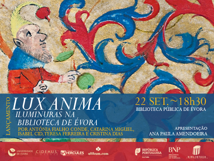 A obra Lux Anima. Iluminuras na Biblioteca de Évora, uma edição da Althum, coordenada por Antónia Fialho Conde, será apresentada na Biblioteca Pública de Évora (22. Setembro. 2017) e na Biblioteca Nacional de Portugal (27. Setembro. 2017).
