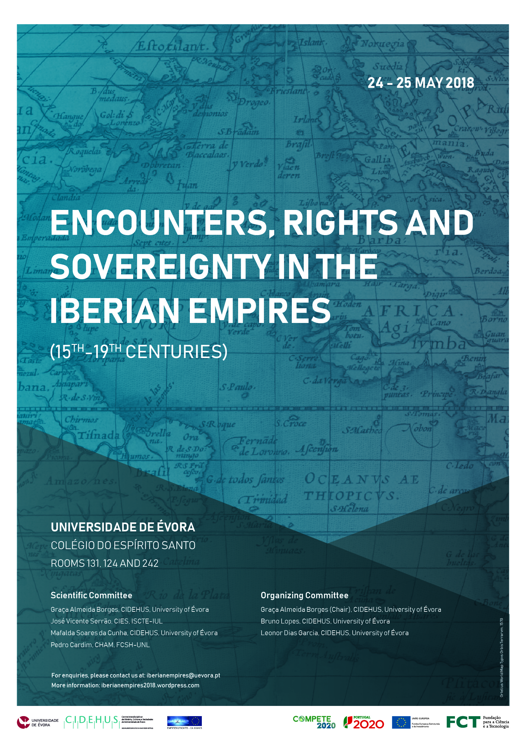 It will be held at the University of Évora on May 24 and 25, 2018, the International Conference | Encounters, Rights, and Sovereignty in the Iberian empires, (15th-19th centuries).