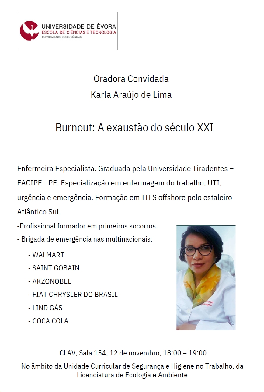 Aula aberta no âmbito da U.C. de Segurança e Higiene no Trabalho da Licenciatura em Ecologia e Ambiente.