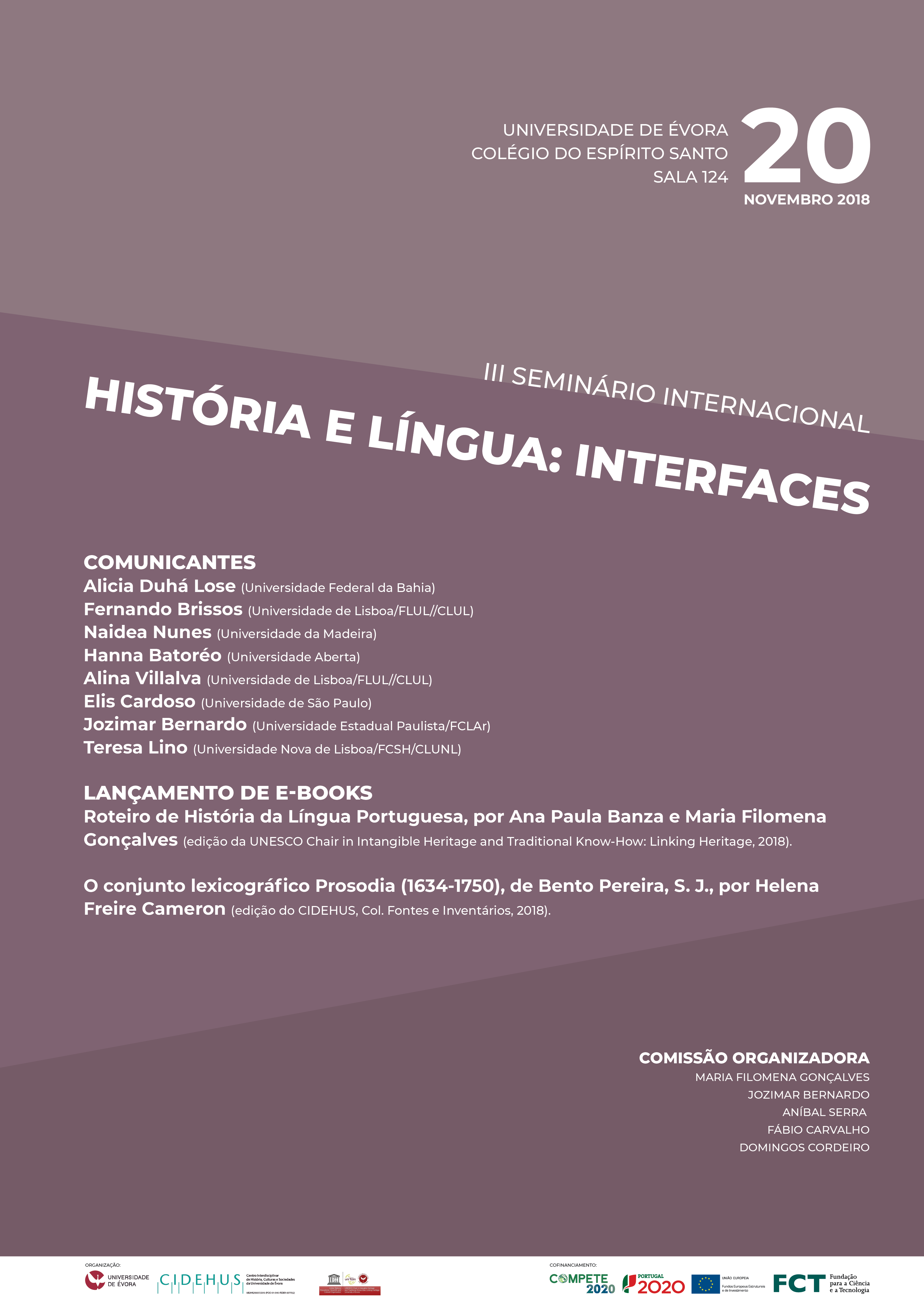 Decorrerá, no dia 20 de Novembro de 2018, o III Seminário Internacional História e Língua: Interfaces, na Universidade de Évora.